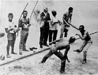 Dès 1640, des populations d’esclaves se révoltent et résistent aux assauts lancés contre elles. Vers 1780, la pratique de ce rite par les gens de couleur, libres ou esclaves, inquiète l’autorité qui persécute alors les “capoeiras“, sans succès. En 1875, la capoeira existe dans toutes les villes du Brésil, les médias de l’époque soulignent l’inquiétude d’une catégorie de citoyens qui se sentent menacés par cette expression corporelle, alors que les notables utilisent cette psychose à des fins politiques. Vers 1887, dans les villes, une révolution visant à l’abolition de l’esclavage fait son chemin, ce qui provoque, en 1889 un coup d’état militaire et la promulgation d’une loi interdisant l’exercice de la capoeira. Cette interdiction est de plus en plus contestée par les intellectuels. Conscients de la valeur de cet héritage afro-brésilien, ils demandent alors la réhabilitation de la capoeira, en tant que sport.